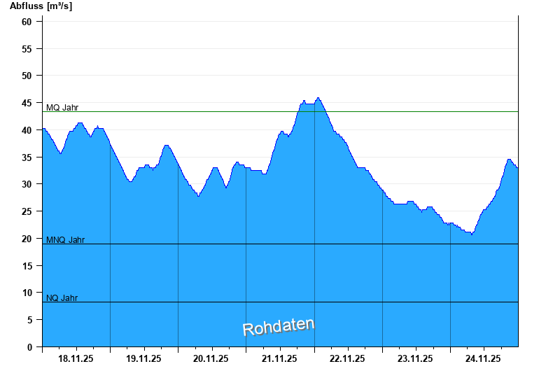 - Mittlerer Niedrigwasserabfluss MNQ 19 m³/s