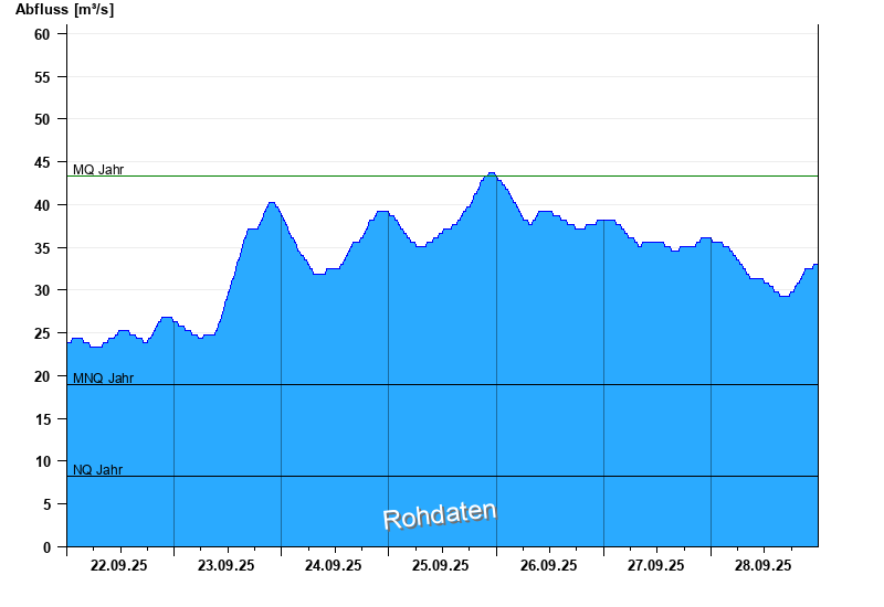 - Mittlerer Niedrigwasserabfluss MNQ 19 m³/s