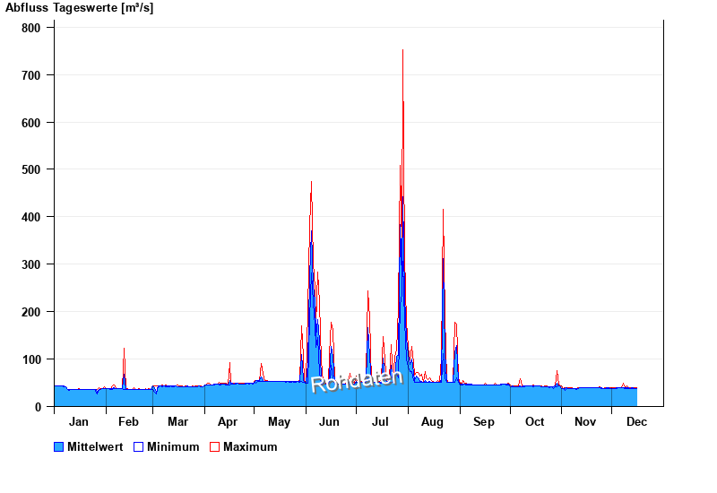 | Datum | Mittelwert [m³/s] | Maximum [m³/s] | Minimum [m³/s] |