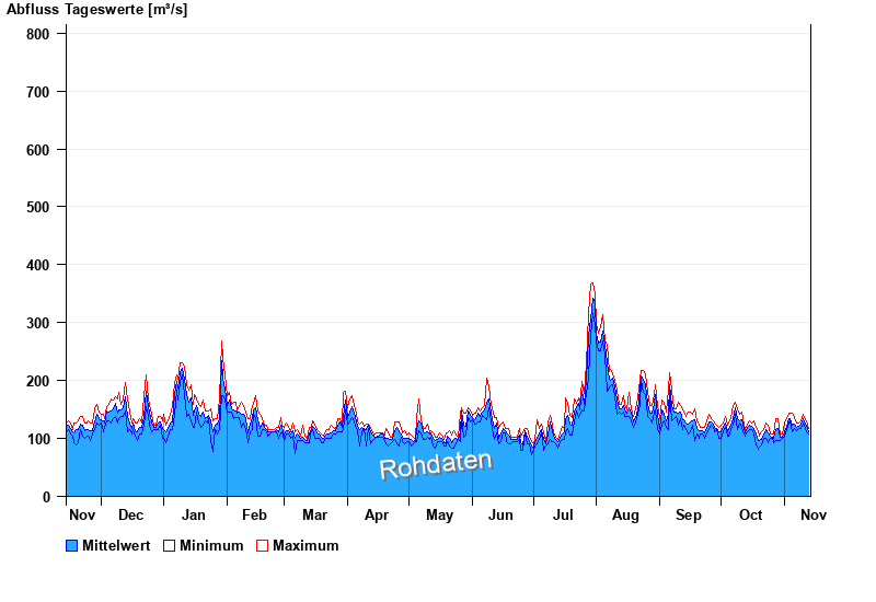 | Datum | Mittelwert [m³/s] | Maximum [m³/s] | Minimum [m³/s] |