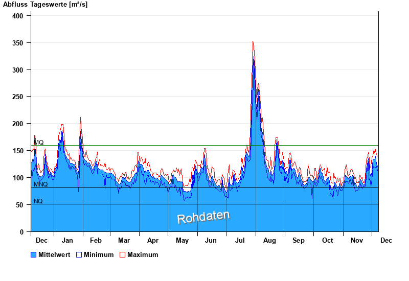 | Datum | Mittelwert [m³/s] | Maximum [m³/s] | Minimum [m³/s] |