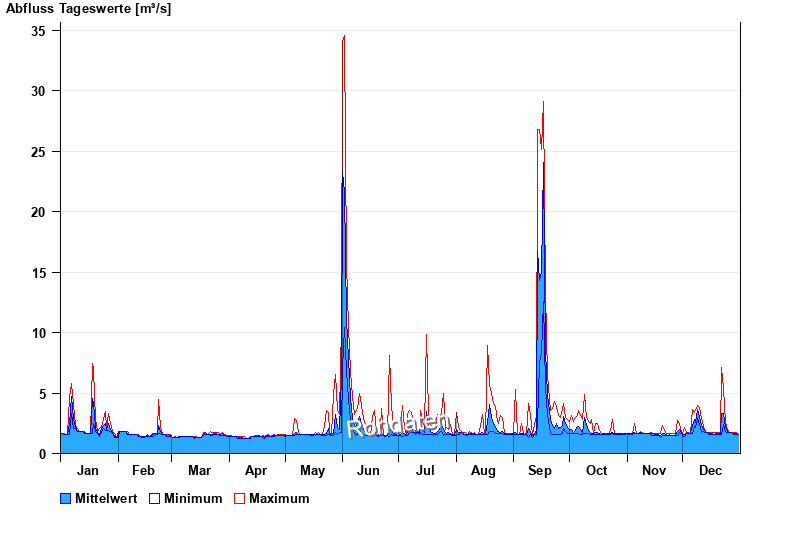 | Datum | Mittelwert [m³/s] | Maximum [m³/s] | Minimum [m³/s] |