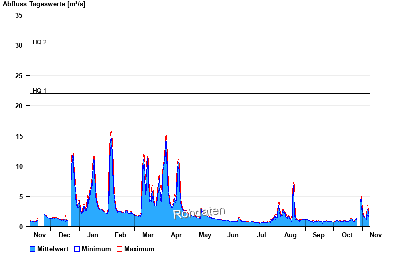 | Datum | Mittelwert [m³/s] | Maximum [m³/s] | Minimum [m³/s] |