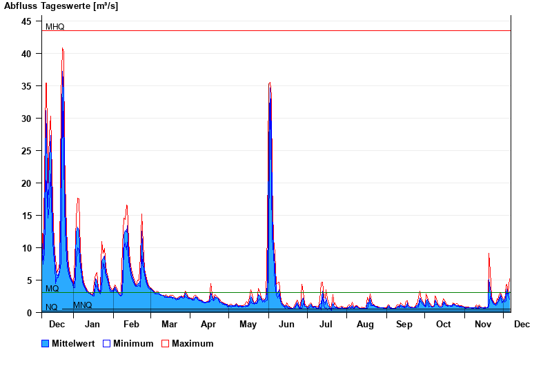 - Mittlerer Hochwasserabfluss MHQ 43,5 m³/s
