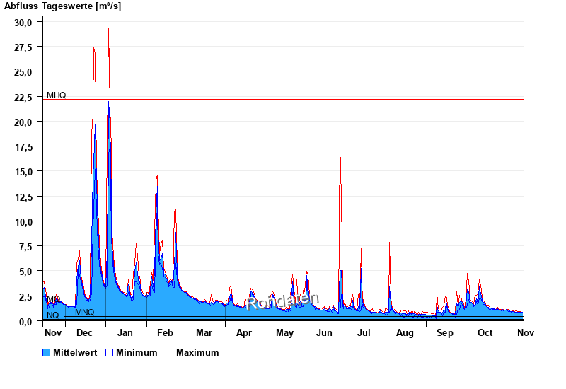 - Mittlerer Hochwasserabfluss MHQ 22,2 m³/s