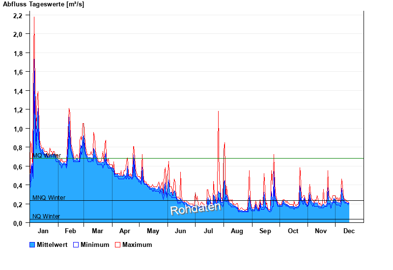 | Datum | Mittelwert [m³/s] | Maximum [m³/s] | Minimum [m³/s] |