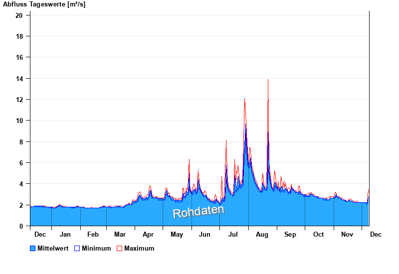 | Datum | Mittelwert [m³/s] | Maximum [m³/s] | Minimum [m³/s] |
