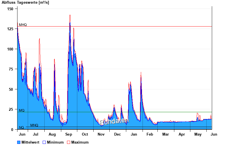- Mittlerer Hochwasserabfluss MHQ 128 m³/s
