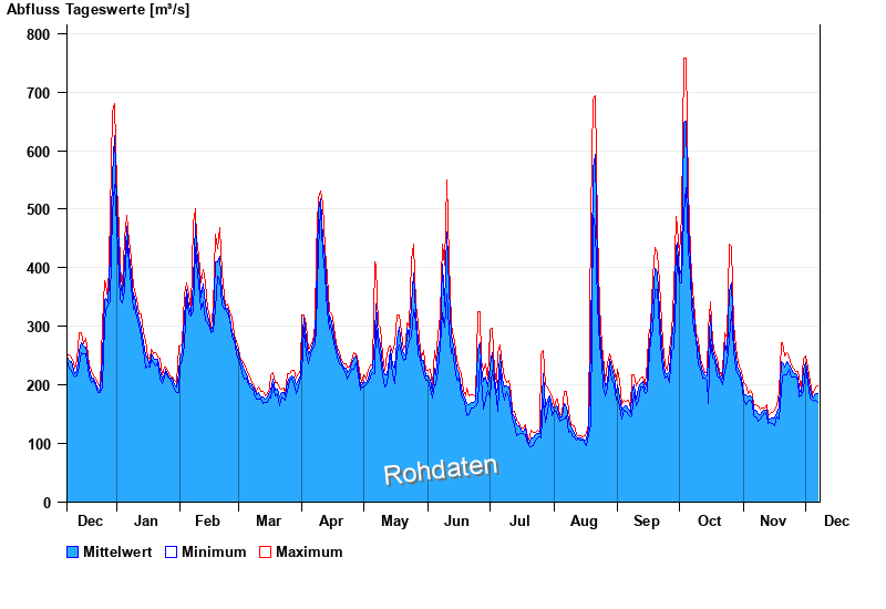 | Datum | Mittelwert [m³/s] | Maximum [m³/s] | Minimum [m³/s] |