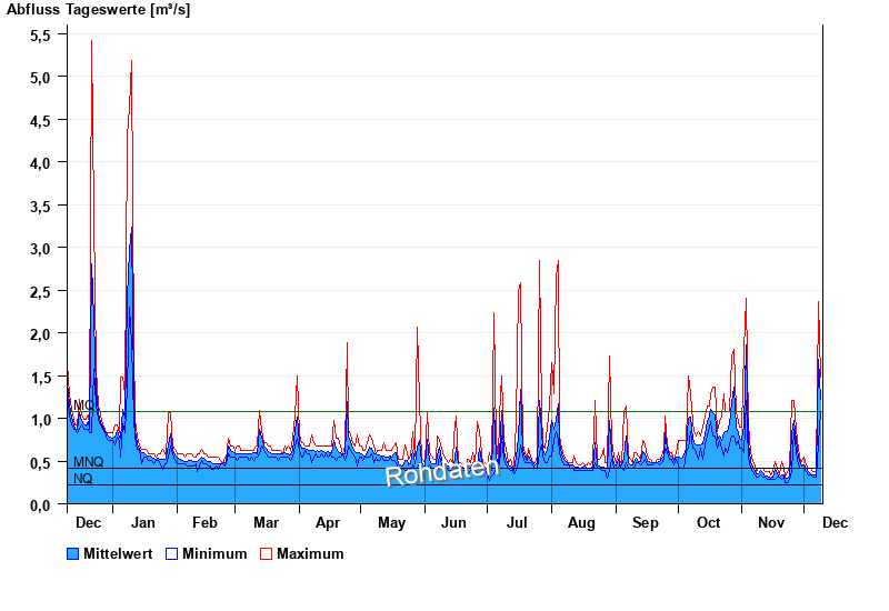 | Datum | Mittelwert [m³/s] | Maximum [m³/s] | Minimum [m³/s] |