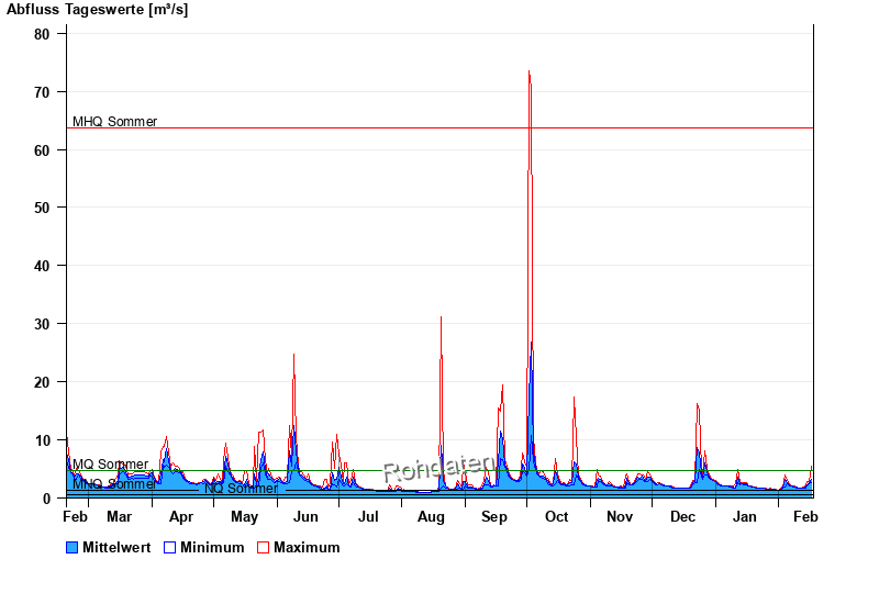 | Datum | Mittelwert [m³/s] | Maximum [m³/s] | Minimum [m³/s] |