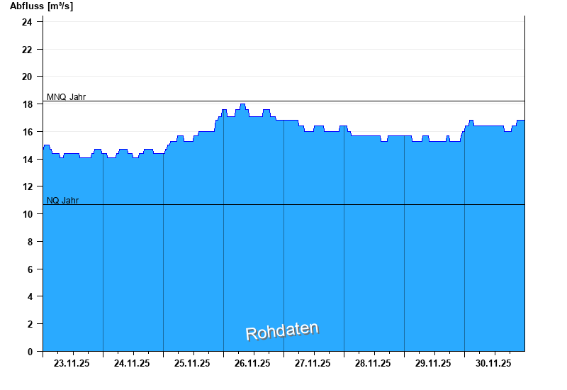 - Mittlerer Niedrigwasserabfluss MNQ 18,2 m³/s