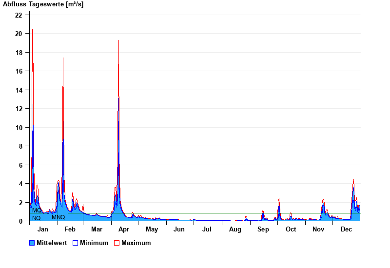 | Datum | Mittelwert [m³/s] | Maximum [m³/s] | Minimum [m³/s] |