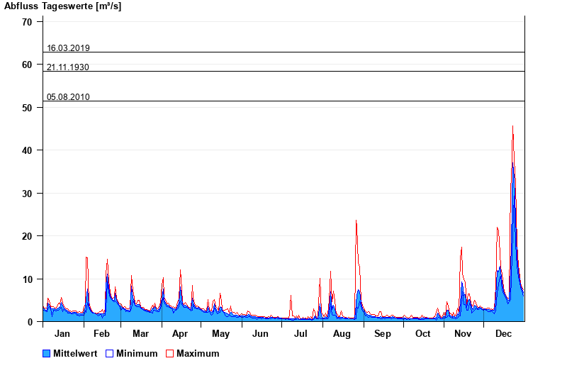 | Datum | Mittelwert [m³/s] | Maximum [m³/s] | Minimum [m³/s] |