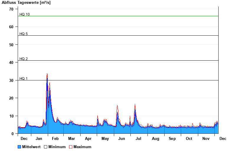| Datum | Mittelwert [m³/s] | Maximum [m³/s] | Minimum [m³/s] |