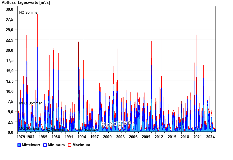 | Datum | Mittelwert [m³/s] | Maximum [m³/s] | Minimum [m³/s] |
