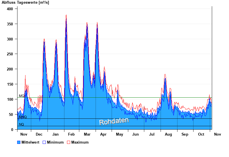 | Datum | Mittelwert [m³/s] | Maximum [m³/s] | Minimum [m³/s] |