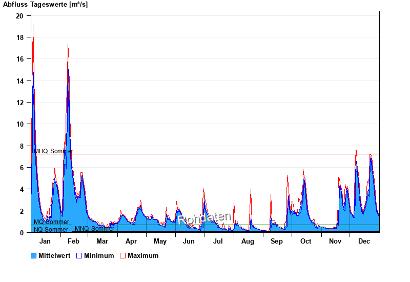 | Datum | Mittelwert [m³/s] | Maximum [m³/s] | Minimum [m³/s] |