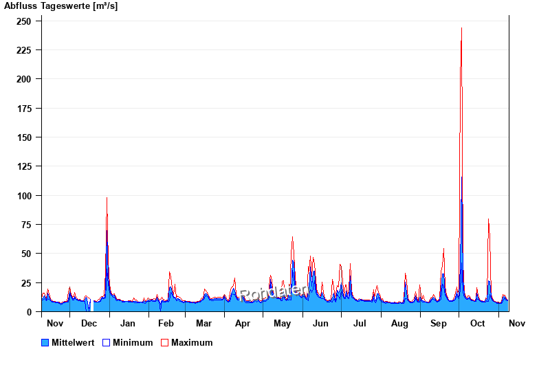 | Datum | Mittelwert [m³/s] | Maximum [m³/s] | Minimum [m³/s] |