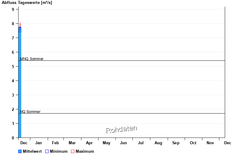| Datum | Mittelwert [m³/s] | Maximum [m³/s] | Minimum [m³/s] |