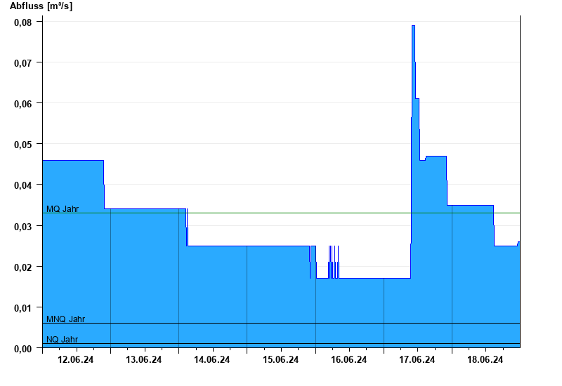 - Mittlerer Niedrigwasserabfluss MNQ 0,006 m³/s