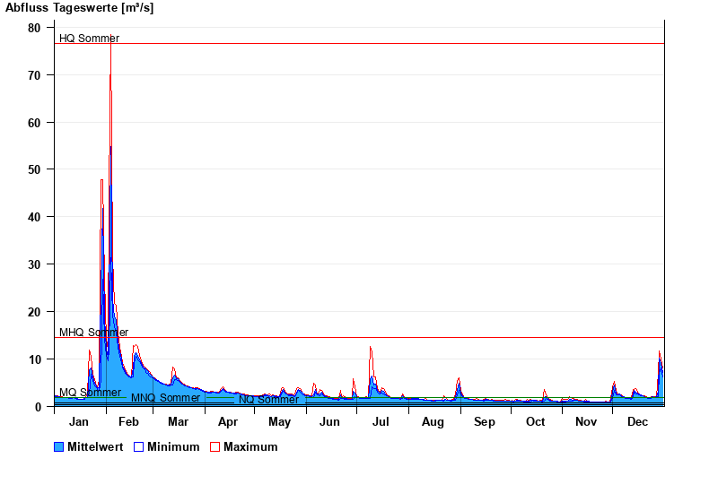 | Datum | Mittelwert [m³/s] | Maximum [m³/s] | Minimum [m³/s] |