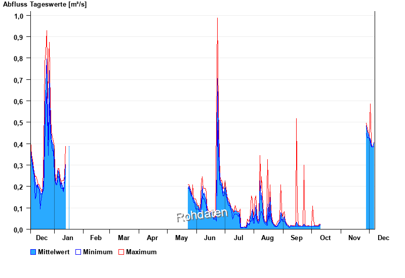 | Datum | Mittelwert [m³/s] | Maximum [m³/s] | Minimum [m³/s] |