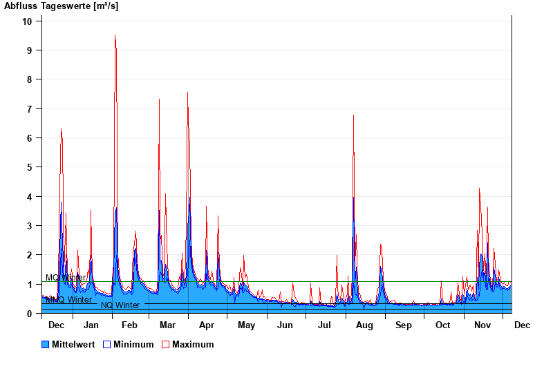 - Mittlerer Niedrigwasserabfluss MNQ 0,338 m³/s
