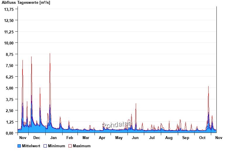 | Datum | Mittelwert [m³/s] | Maximum [m³/s] | Minimum [m³/s] |