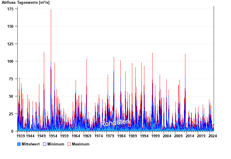 | Datum | Mittelwert [m³/s] | Maximum [m³/s] | Minimum [m³/s] |