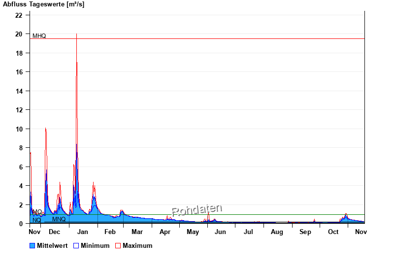 - Mittlerer Niedrigwasserabfluss MNQ 0,168 m³/s