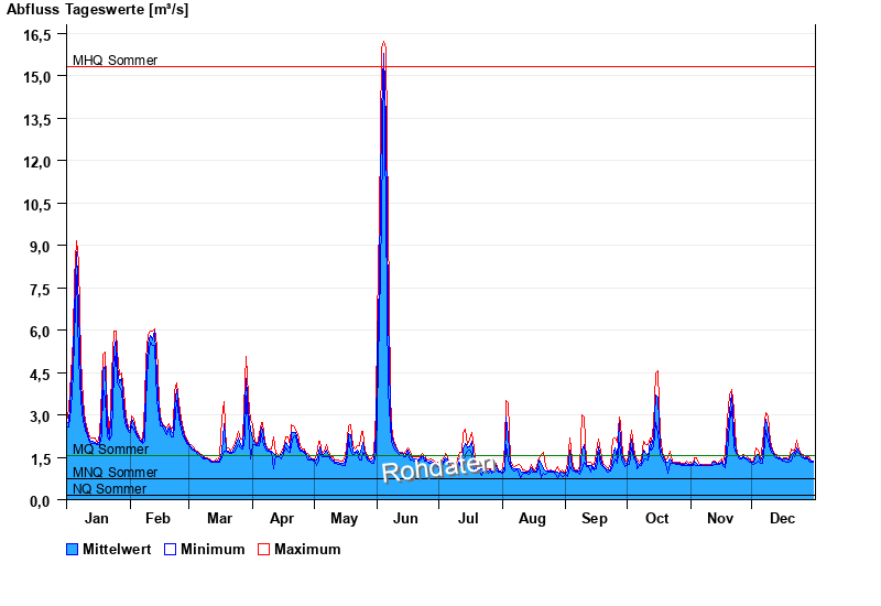 - Mittlerer Hochwasserabfluss MHQ 15,3 m³/s