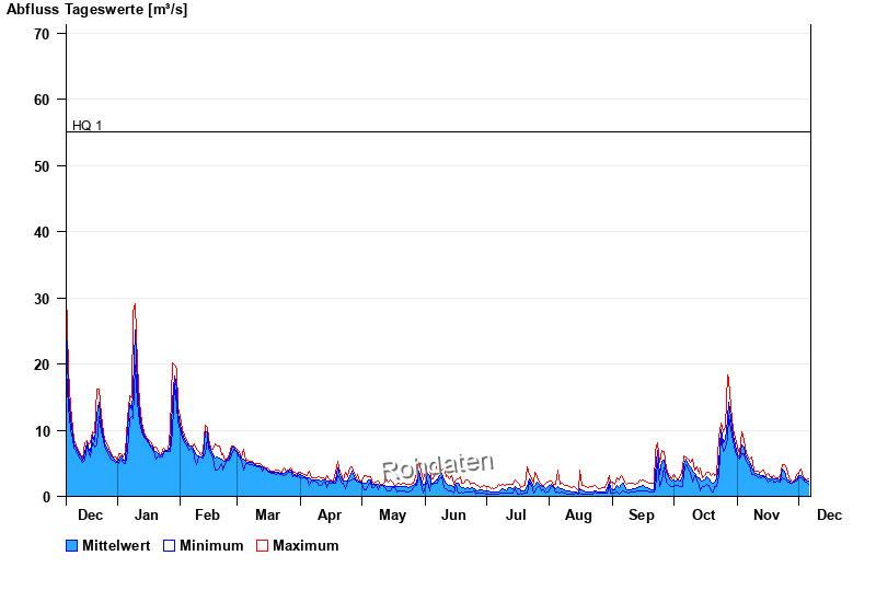| Datum | Mittelwert [m³/s] | Maximum [m³/s] | Minimum [m³/s] |
