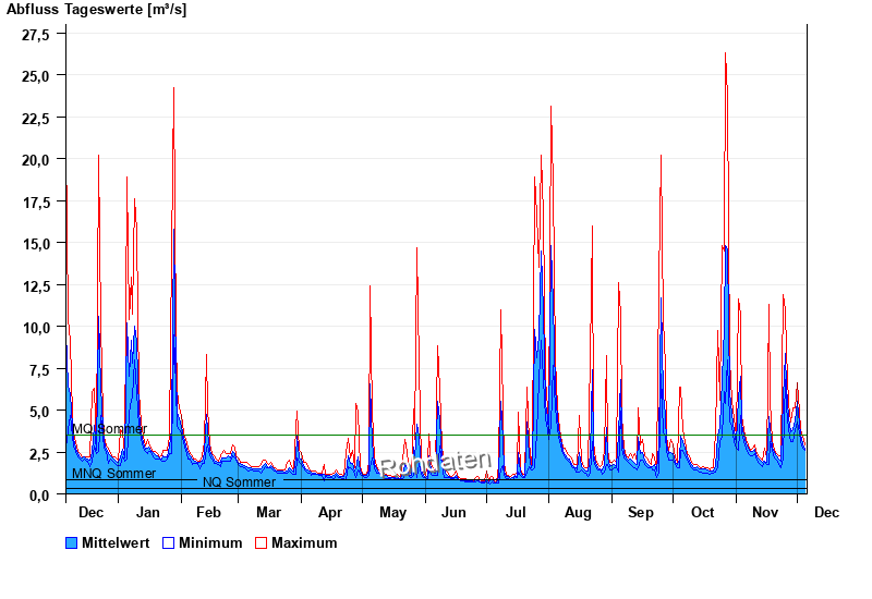 | Datum | Mittelwert [m³/s] | Maximum [m³/s] | Minimum [m³/s] |