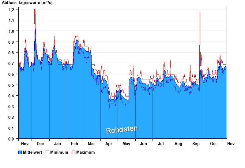 | Datum | Mittelwert [m³/s] | Maximum [m³/s] | Minimum [m³/s] |