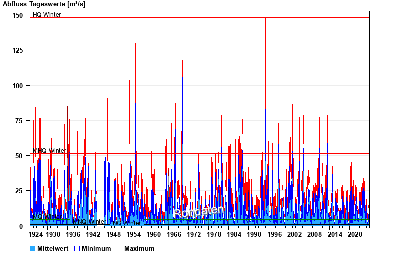 | Datum | Mittelwert [m³/s] | Maximum [m³/s] | Minimum [m³/s] |
