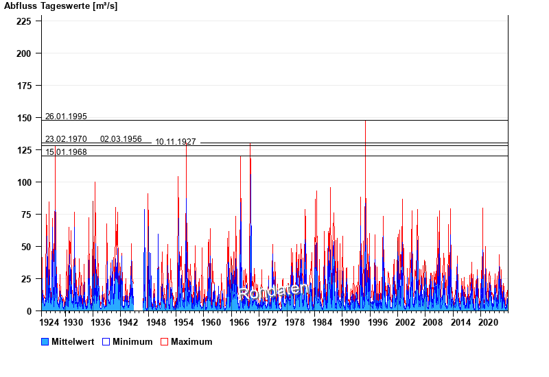 | Datum | Mittelwert [m³/s] | Maximum [m³/s] | Minimum [m³/s] |