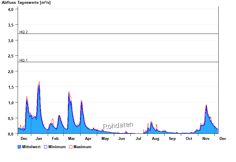 | Datum | Mittelwert [m³/s] | Maximum [m³/s] | Minimum [m³/s] |