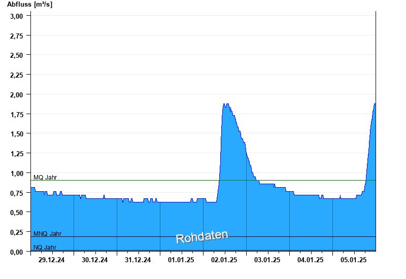 - Mittlerer Niedrigwasserabfluss MNQ 0,185 m³/s