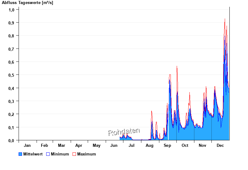 | Datum | Mittelwert [m³/s] | Maximum [m³/s] | Minimum [m³/s] |