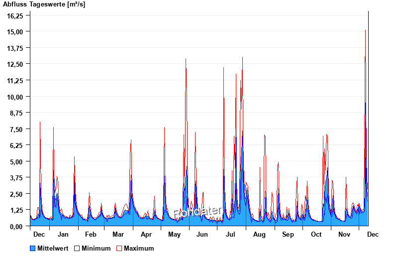 | Datum | Mittelwert [m³/s] | Maximum [m³/s] | Minimum [m³/s] |