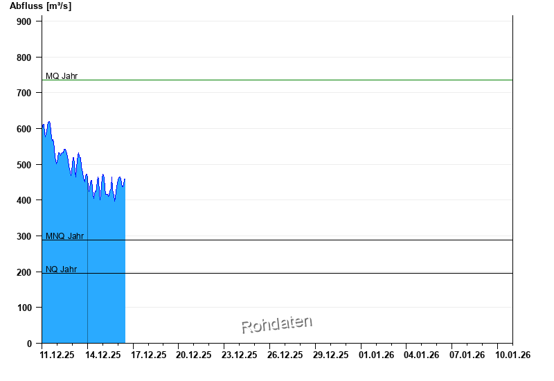 - Mittlerer Niedrigwasserabfluss MNQ 288 m³/s
