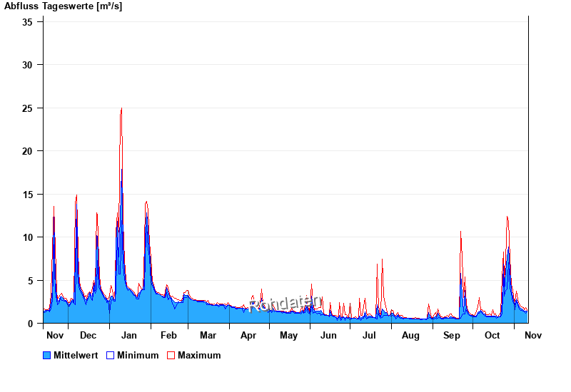 | Datum | Mittelwert [m³/s] | Maximum [m³/s] | Minimum [m³/s] |