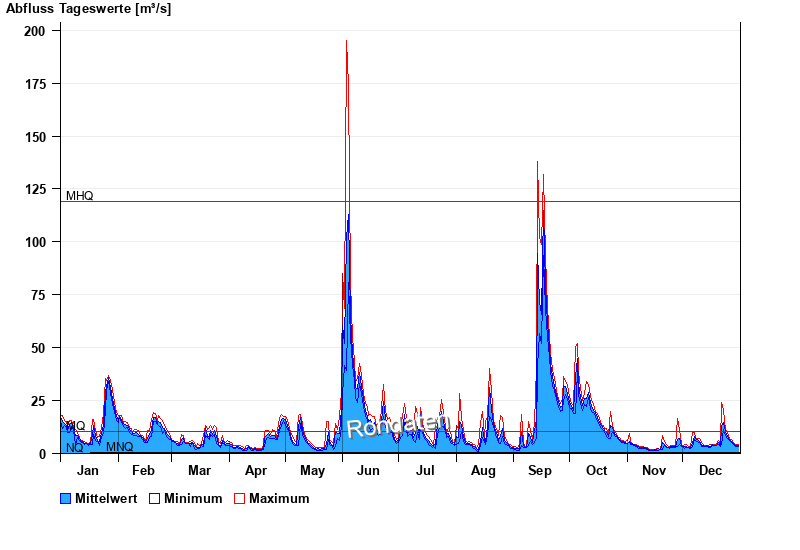 - Mittlerer Hochwasserabfluss MHQ 119 m³/s
