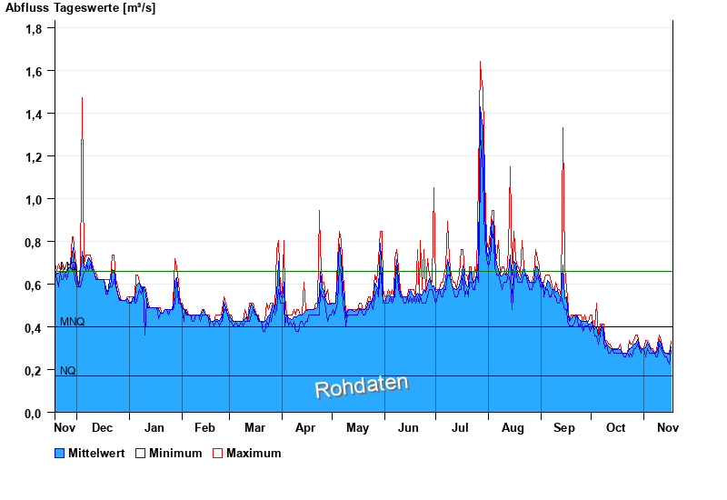- Mittlerer Niedrigwasserabfluss MNQ 0,399 m³/s
