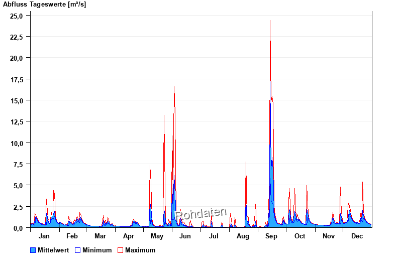 | Datum | Mittelwert [m³/s] | Maximum [m³/s] | Minimum [m³/s] |