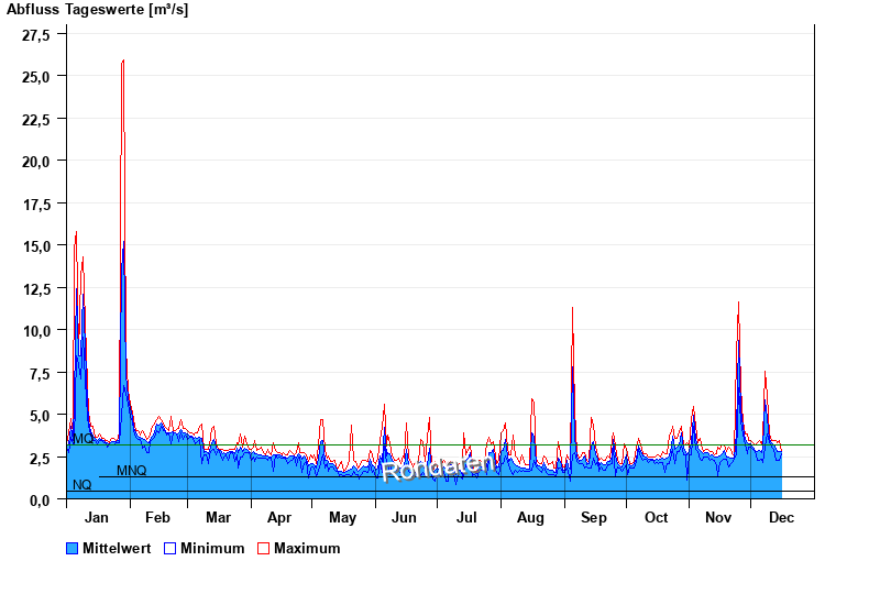 | Datum | Mittelwert [m³/s] | Maximum [m³/s] | Minimum [m³/s] |