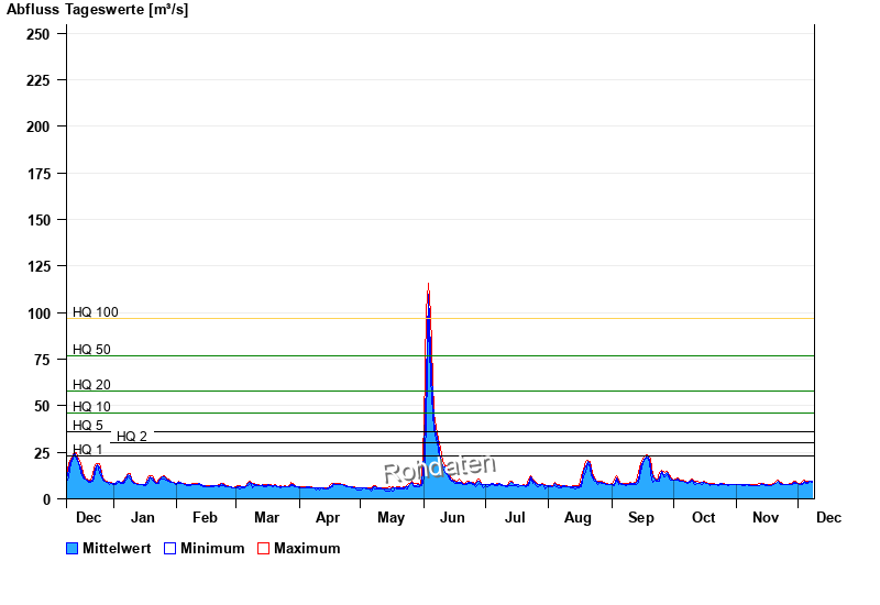 | Datum | Mittelwert [m³/s] | Maximum [m³/s] | Minimum [m³/s] |