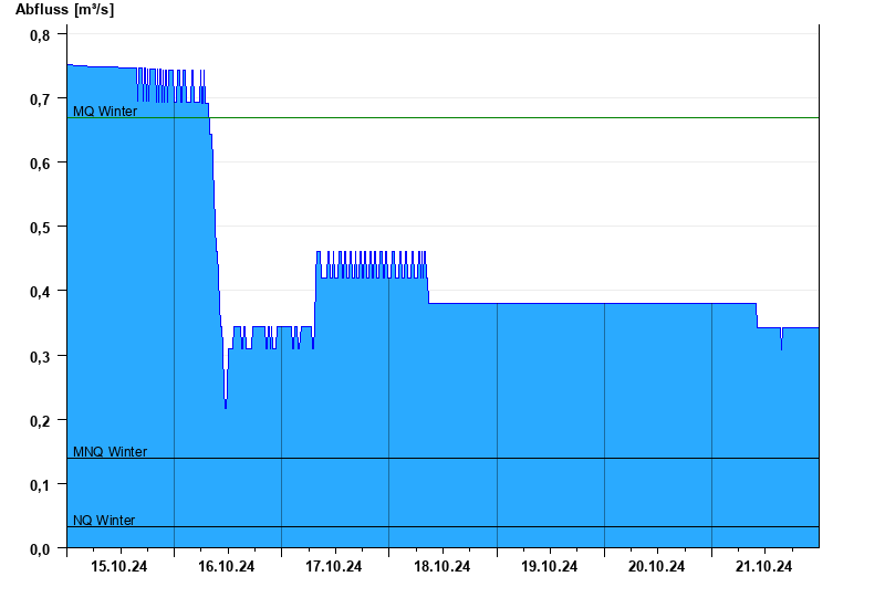 Abfluss vom 15.10.2024 bis zum 21.10.2024| Datum | Abfluss [m³/s] |