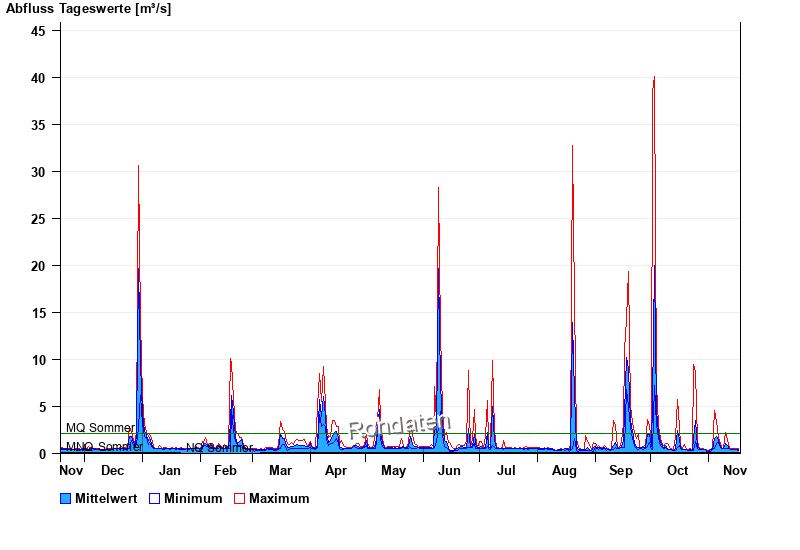 | Datum | Mittelwert [m³/s] | Maximum [m³/s] | Minimum [m³/s] |